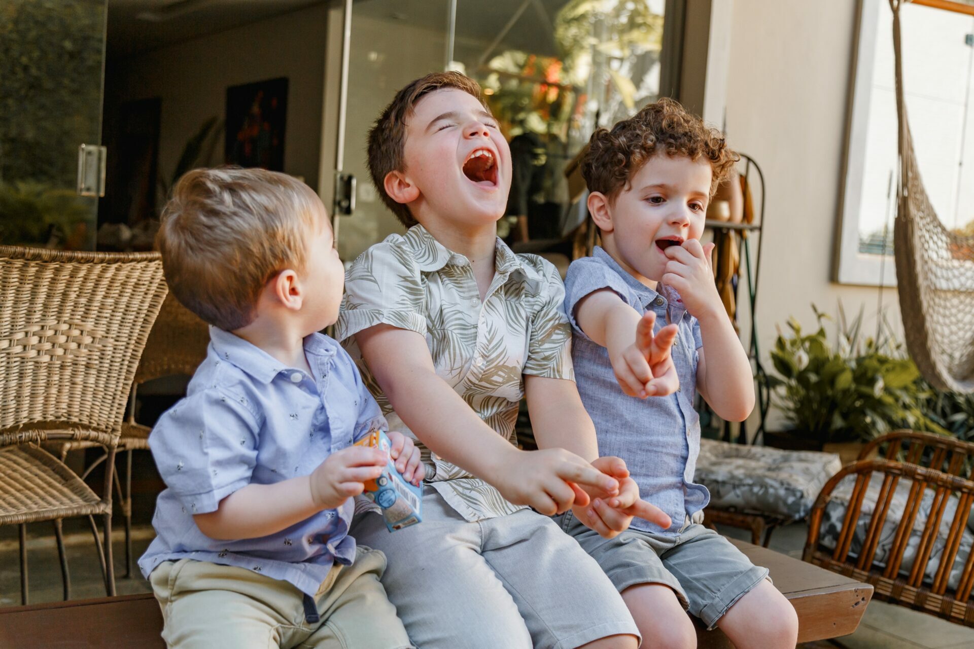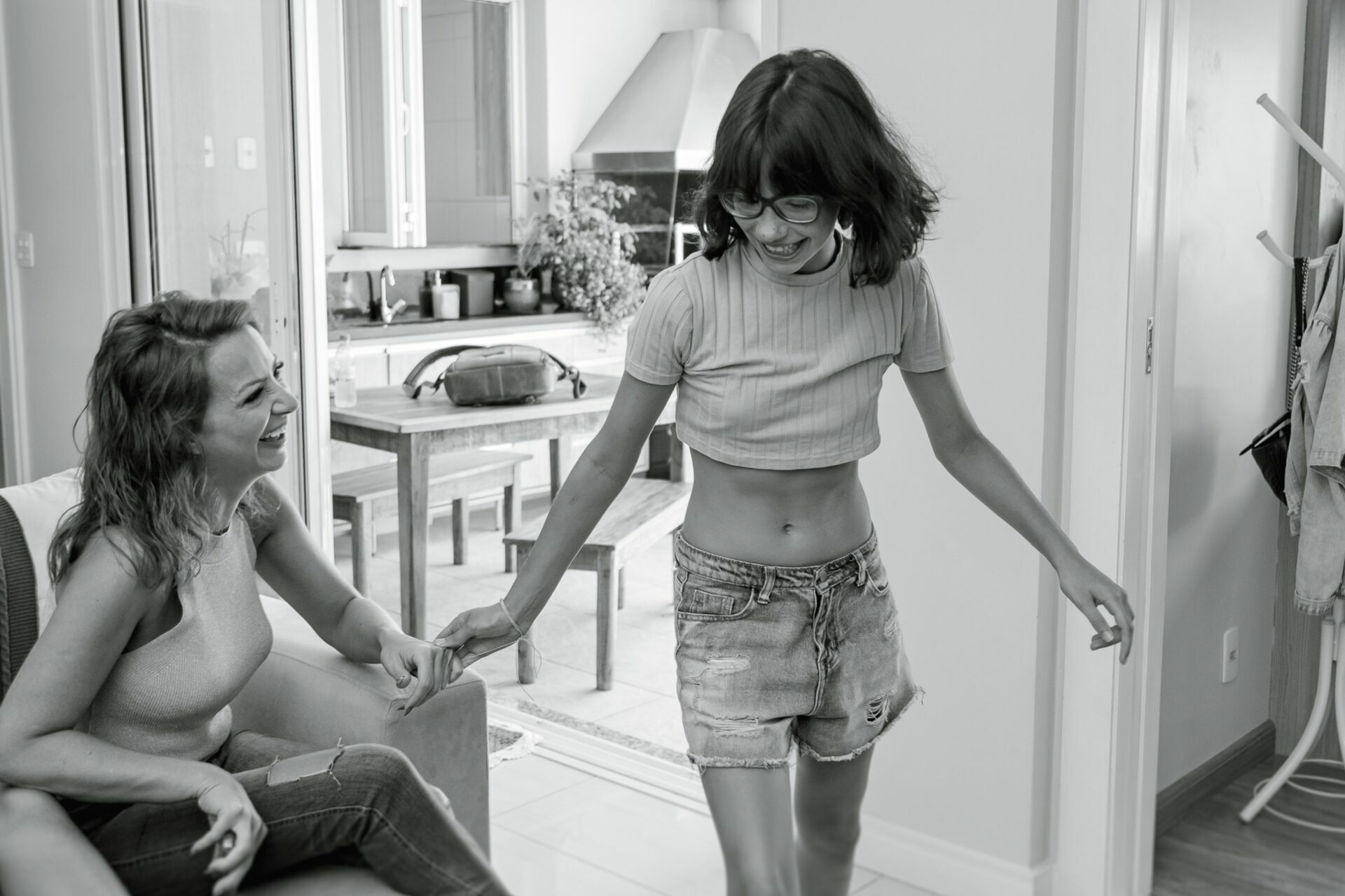 Em casa, o ensaio ganha um tom mais íntimo e afetivo, com registros do cotidiano, dos abraços espontâneos e da rotina que, muitas vezes, passa despercebida. Já nos ensaios externos, a leveza e o movimento entram em cena, criando imagens soltas, naturais e cheias de vida.